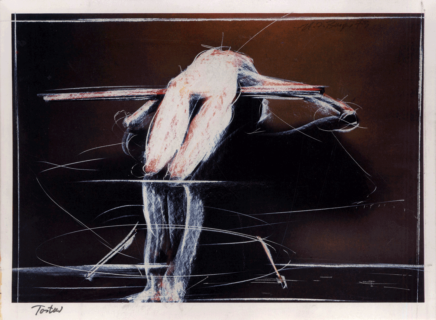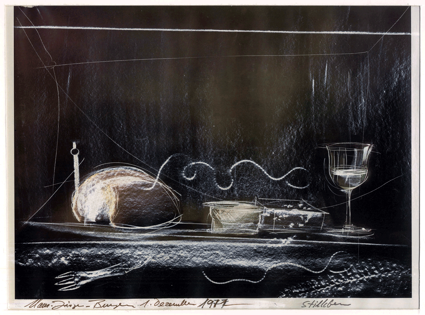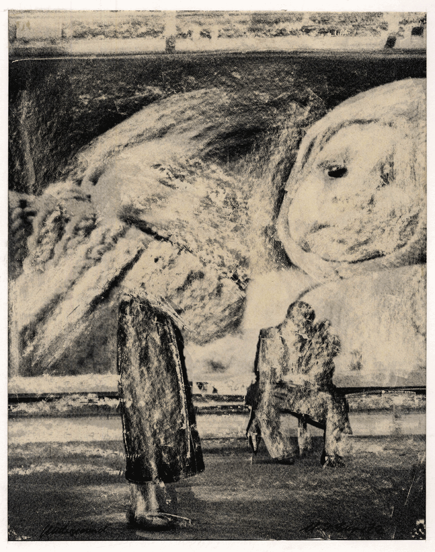 In diesen Arbeiten trägt Burger Flüssigkeiten und manchmal Lösungsmittel auf, um anschließend mit Werkzeugen zu schaben, Kontraste zu betonen, verborgene Details freizulegen und eine feine Spannung zwischen Zerstörung und Schöpfung zu erzeugen — der Akt des Schabens wird so selbst Teil der Komposition.