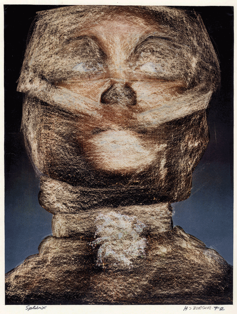 Die Schabetechnik („Schabetechnik“) von Hans‑Jürgen Burger zeigt seine experimentelle Seite: Er arbeitet häufig über fotografischen oder bemalten Flächen und schabt Schichten präzise ab. Dieser subtraktive Prozess verleiht seinen Werken ein rohes, strukturiertes Aussehen, bei dem sich darunterliegende Formen durch kontrolliertes Abrieb hervorheben.